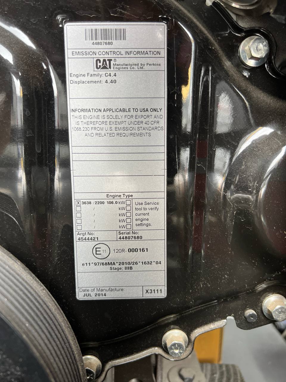 - Engine Family: C4.4 — модельная линейка двигателя.