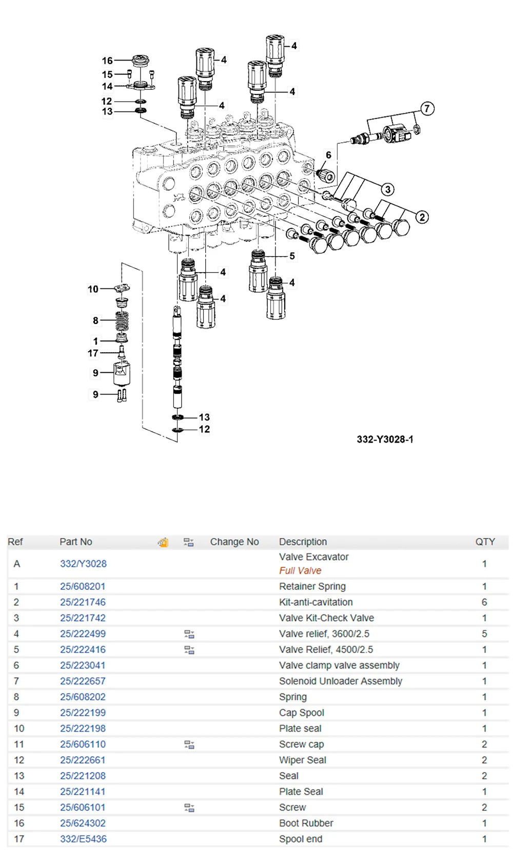 | A | 332/Y3028 | Valve Excavator Full Valve | 1 | 332/Y3028 Гидрораспределитель в сборе |