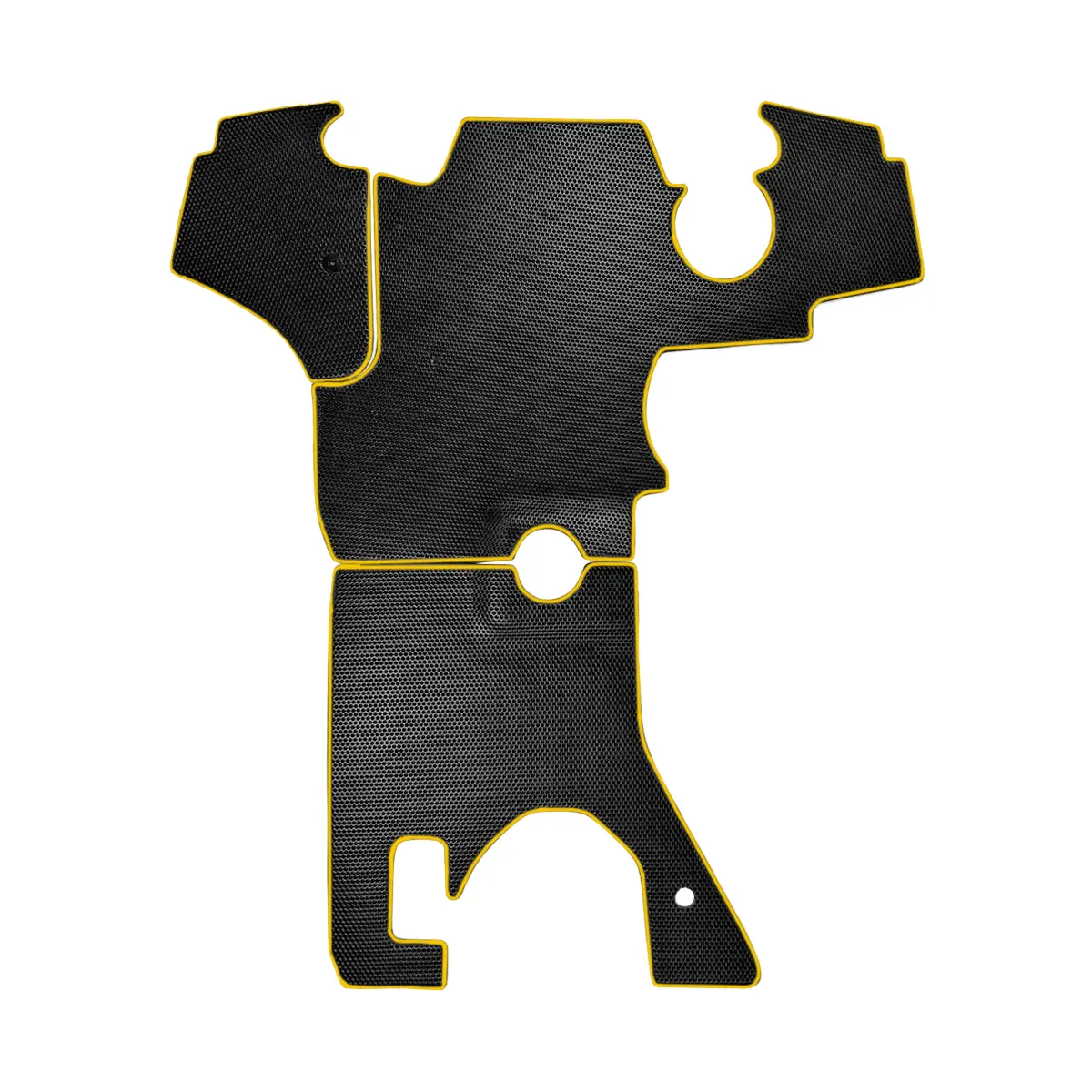 Этот коврик изготовлен из высококачественного материала - ЭВА, который обеспечивает долговечность и устойчивость к износу. Желтая строчка добавляет стиль и индивидуальность кабине техники.