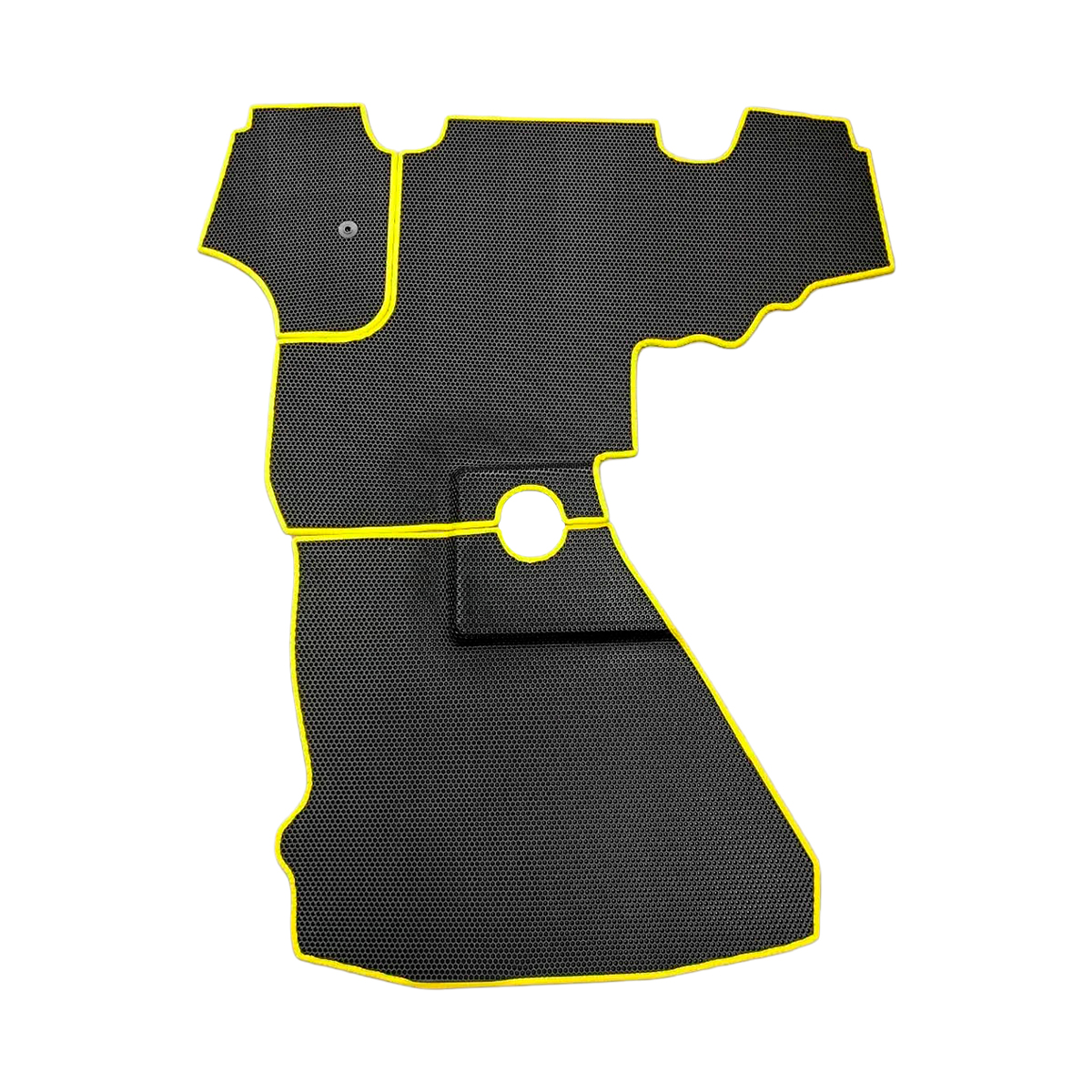 Изготовленный из высококачественного материала — ЭВА, коврик обладает прочностью и долговечностью. Своей желтой строчкой он не только эстетически приятен, но и функционален. Размеры коврика точно соответствуют кабине JCB 5CX, обеспечивая идеальную посадку.