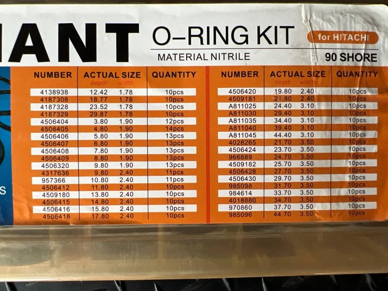 - Тип комплекта: Комплект O-колец для Hitachi