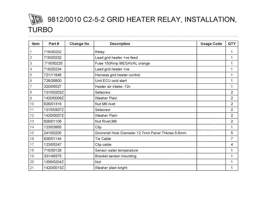 Все компоненты, включая подогрев впускного коллектора JCB 320/05693, 320/05527, а также реле, датчики и оригинальные предохранители, вы можете приобрести через надежного дистрибьютора запасных частей спецтехники. Консультанты помогут подобрать запчасти под конкретную модель JCB, дадут инструкцию по установке и обеспечат техническую поддержку.