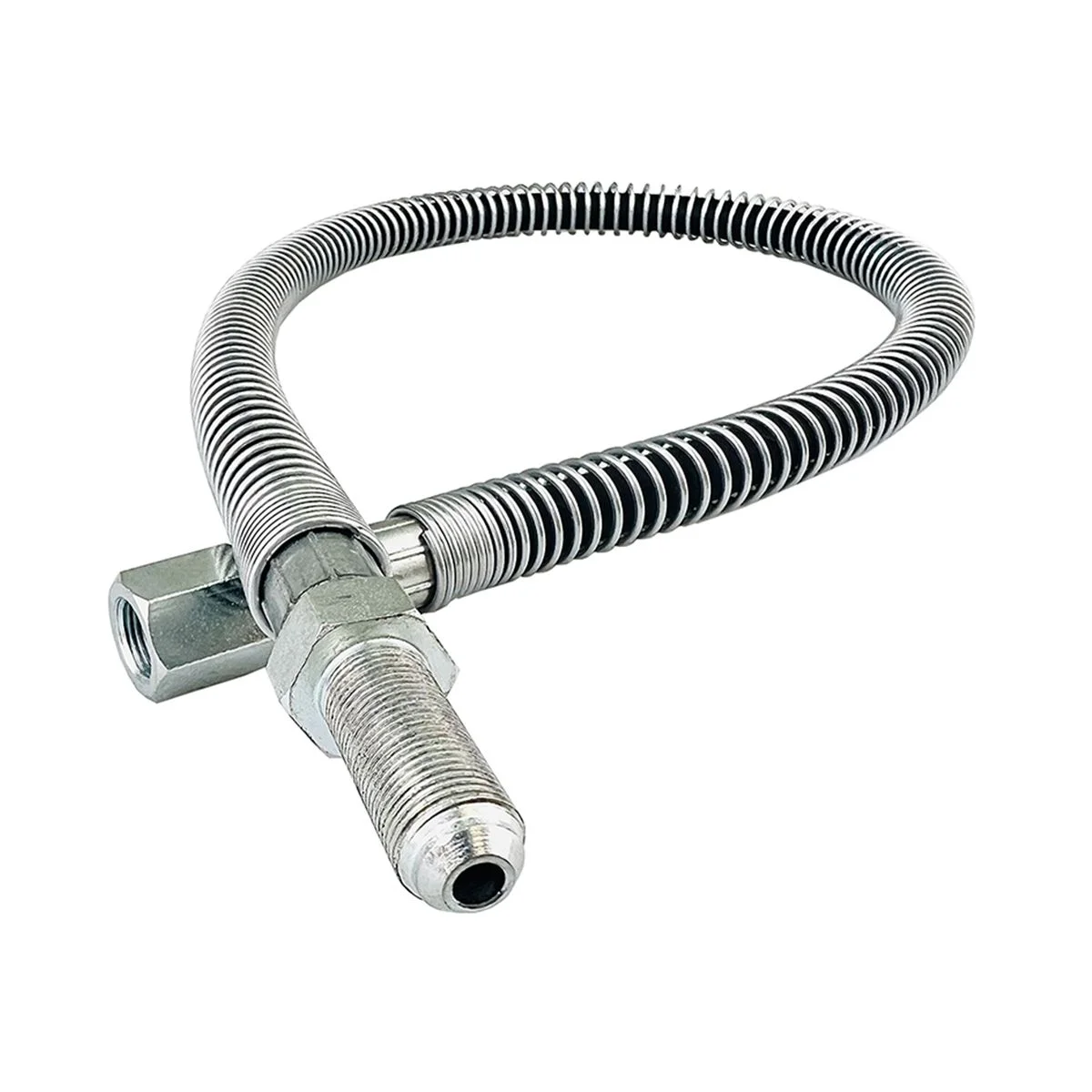 Данный шланг изготовлен из высококачественного резино-латексного композита, что обеспечивает его устойчивость к высоким давлениям и механическим повреждениям. Его длина составляет 760 мм, что идеально подходит для установки в правой части тормозной системы, где требуется обеспечить оптимальную подачу тормозной жидкости. Такой материал и конструкция позволяют шлангу справляться с экстремальными условиями эксплуатации и сохранять свою функциональность на протяжении длительного времени.